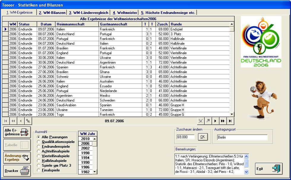 Anhand der WM Datenbank zeigen wir dir die Funktionen und Möglichkeiten der Tunierverwaltung. Außer der WM gibt es weitere zahlreiche Datenbanken in der selben Struktur, wie z. B. Olympia, EM und Confed-Cup.